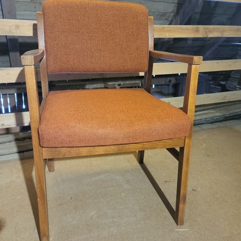 Fin stol med armlener, uten slitasje. Kan hentes i Øyer eller på Manglerud i Oslo. Frakt til Oslo 100 kr.