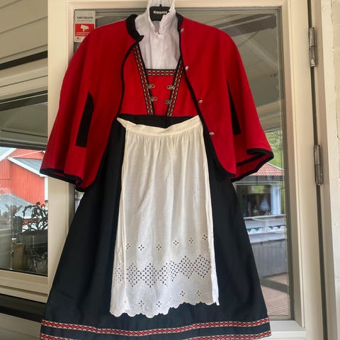 Name it bunadsbluse for jente i størrelse 128. Blusen er hvit og laget av bomull. Den har lange ermer og knappelukking foran, med rysjedetaljer ved hals. Kr 100