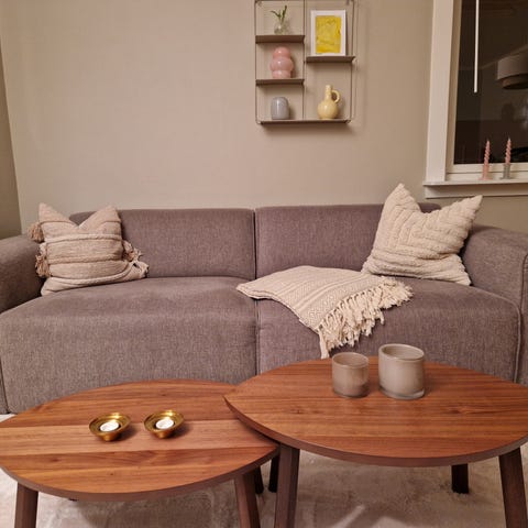 Beina er forsterket med lim da disse var noe løs tidligere. Selges pga at det ble litt lite til den nye sofaen.
