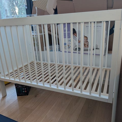 Meget pen seng m/madrass. Bredde 60 cm, lengde 120cm.