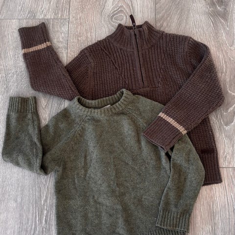 Kjempegode gensere i 100% merinoull i str 98/104 fra Voksi og Lillelam. Brukt av et barn, ingen flekker eller hull. Nypris på Voksi genseren 499kr, og Lillelam genseren rundt 599kr.
