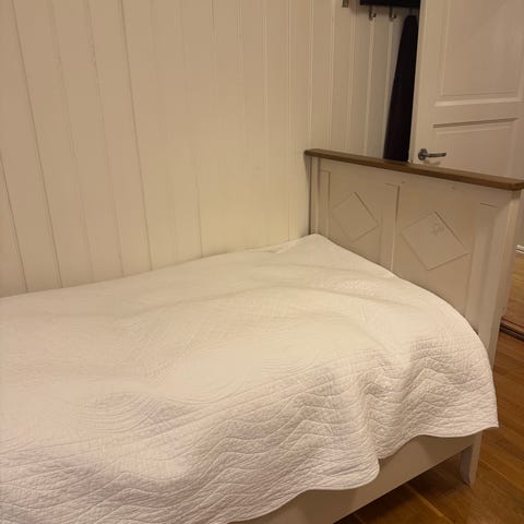 Hvitmalt seng i heltre