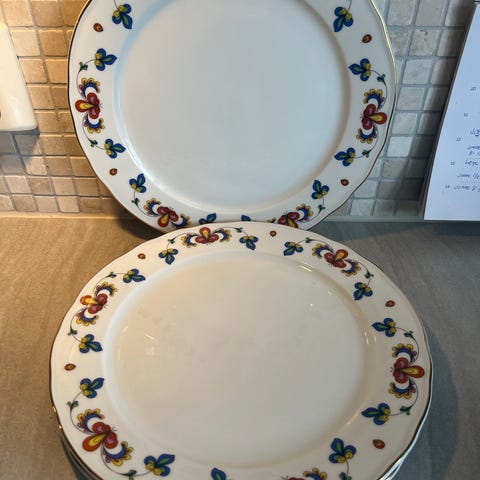 Selger tallerkner og asjetter, med noen bruksmerker. Kan selges samlet eller hver for seg.