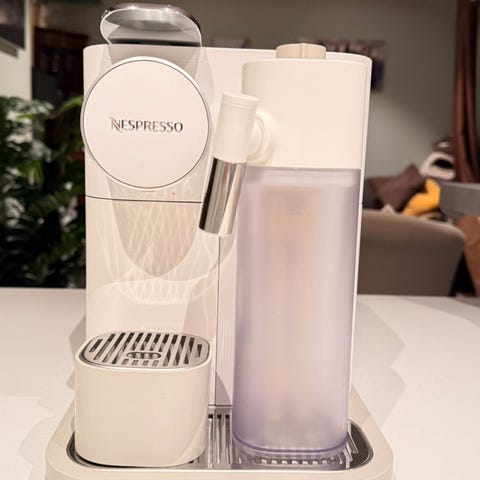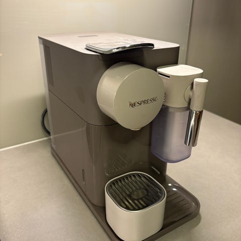 Kaffemaskinen bruker Nespresso-kapsler og er laget for tilberedning av ulike kaffetyper. Den har integrert melkebeholder og melkeskummer
