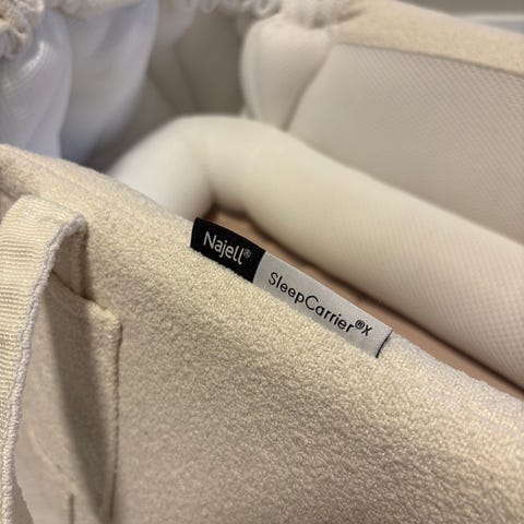 Ubrukt Najell SleepCarrier X i sort med reducer og madrasstrekk kjøpt i juni 2025. Datteren vår likte ikke å ligge på rygg i starten og dermed ble det bare stående. Vi arvet madrasstrekket, men er vasket og aldri brukt av oss. Ny pris for alt på Najell sine nettsider er 2397kr.