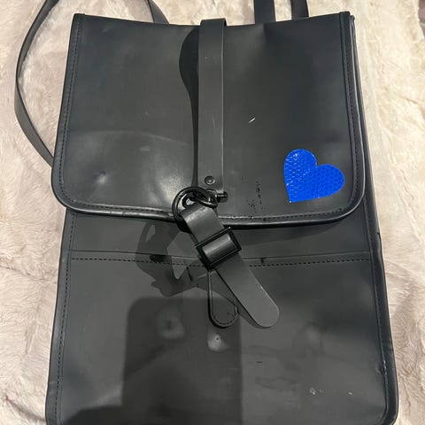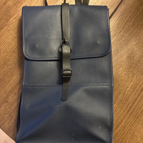 Rains ryggsekk i kunstlær for unisex. Sekken har klaff med stropp og metallspenne i front. Justerbare skulderstropper på baksiden og vertikal glidelåslomme. Utført i glatt, svart kunstlær med et minimalistisk og rektangulært design. Egnet til daglig bruk, skole eller jobb, med plass til det mest nødvendige som mindre laptop/nettbrett, dokumenter og personlige eiendeler.