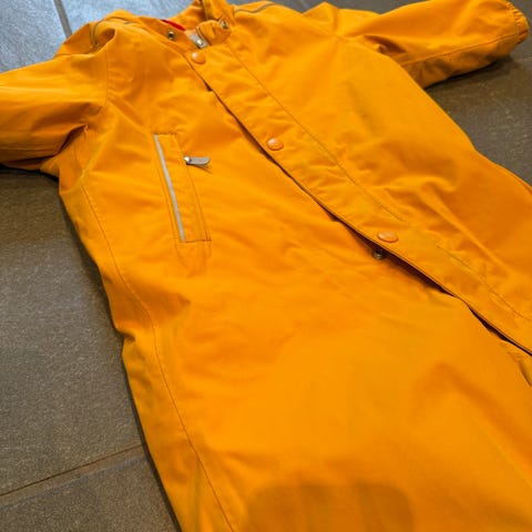 Reima vinterdress i størrelse. Den har avtagbar hette, glidelås foran med beskyttende klaff, strikk i midjen og justerbare fotstropper. Reflekselementer gir bedre synlighet. En god og varm vinterdress.