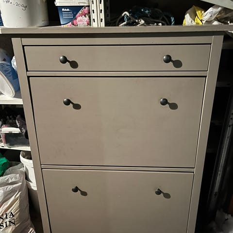 Benk med skohylle