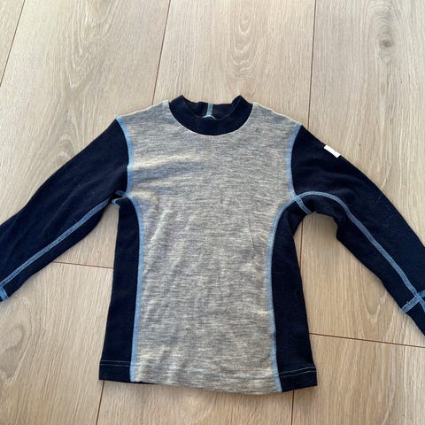 Reflex ulltrøye for barn i størrelse 98/104. Langermet overdel i blå ull, unisex-modell.