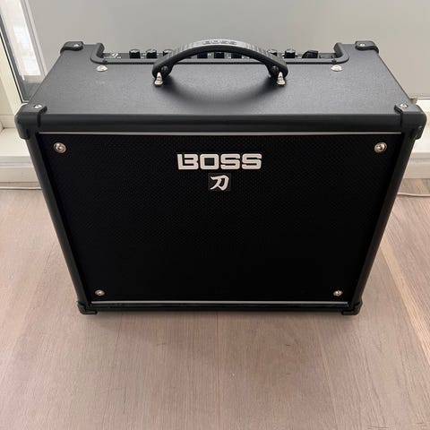 Mer detaljer om forsterkeren i linken https://www.boss.info/no/products/katana-100_gen_3/, evt. gjør et søk på YouTube - veldig mye info og tips om Boss Katana der.