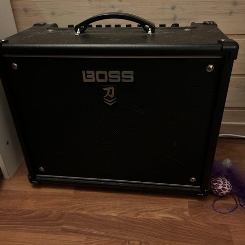 Boss Katana 100 Gen 3 (=nyeste versjon) med utstyr selges. Her får du full pakke til en meget rimelig pris. I tillegg til forsterkeren er det: