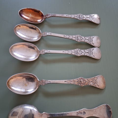 5 stk teskjeer, Th. Martinsen, Tønsberg