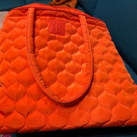 Anine Bing veske i stoff til dame. Vesken er quiltet med mønstret overflate og har doble bærehåndtak. Fargen fremstår som svart. Liten metall-logo i front. Åpen topp med romslig hovedrom som egner seg til hverdagsbruk, jobb eller korte turer. Stoffmateriale gjør vesken lett i vekt og enkel å bære på skulder eller i hånden.