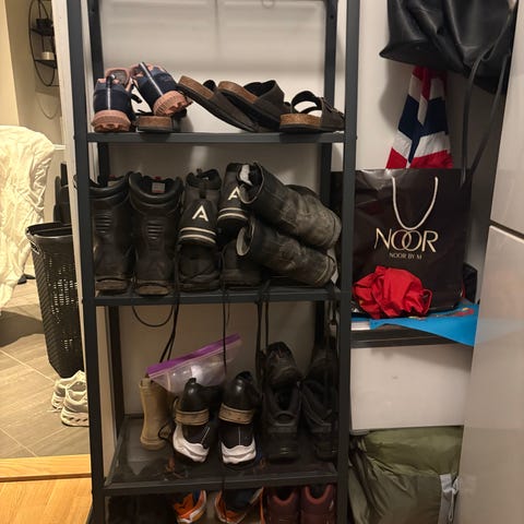 Selger min sko hylle da jeg ikke får plass til den dit jeg skal flytte