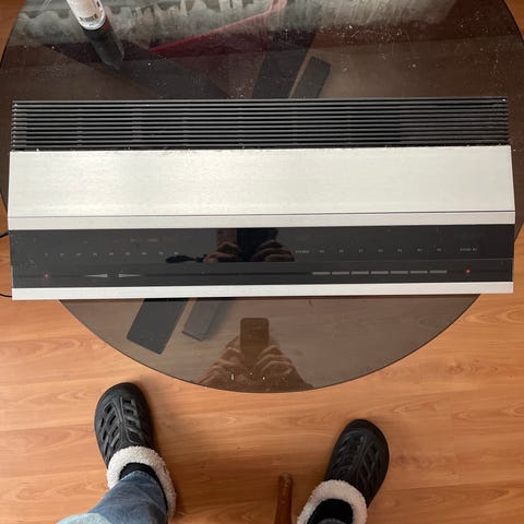 Selger en flott og velholdt BeoSound Ouverture fra Bang & Olufsen, komplett med original gulvstand.
