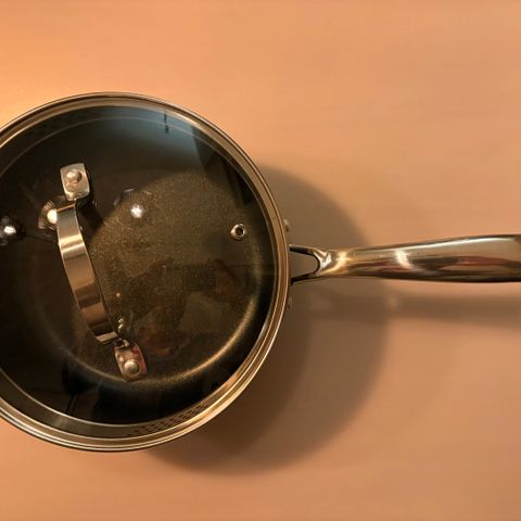 Jamie Oliver tefal kombinert gryte/stekepanne. Har brukt den hovedsakelig som gryte. Diameter ca. 19.5cm høyde ca. 9.5cm.