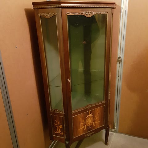 Nydelig skap med mange flotte detaljer. Kledd i grønn fløyel innvendig.