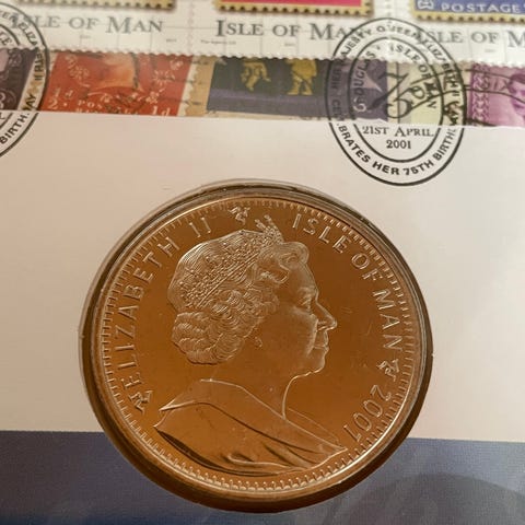 To mynter med Dronning Elisabeth. Har ikke selve brevet. Kun det som er avbildet. Selger begge samlet.