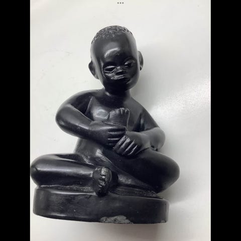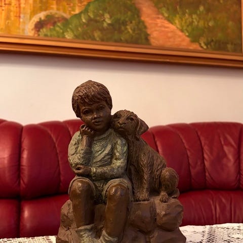 Eldre håndmalt dekorfigur i gips/chalkware, trolig fra 1950–70-tallet.