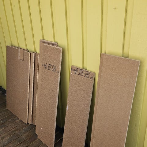 Gir bort panelplatene jeg ikke trengte for å legge ny himling. Det er to hele, og en halv plate, samt to biter. Platene har str. 30x120 cm.