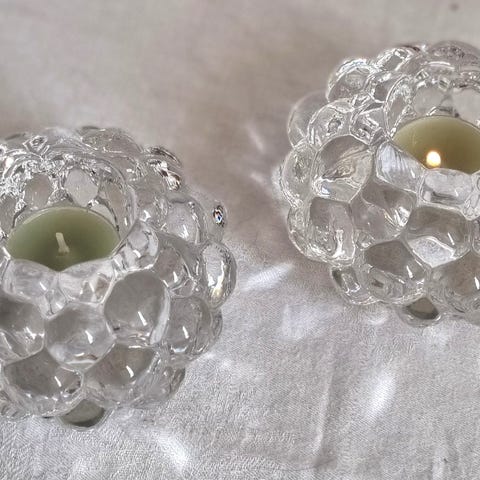 3 telyseholdere i glass med plastdekor