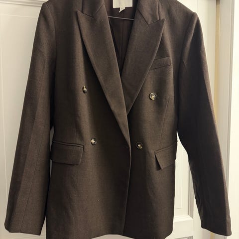 Max Mara blazer for dame i størrelse XS/S. Laget i Italia. Blazeren er brun med diskrete stripemønster og har klassisk krage og én knapp foran. Yttermaterialet inneholder ull og angoraull, som gir et mykt og varmt uttrykk. Innsiden er helfôret med glatt fôr for behagelig passform. Jakken har to frontlommer og en innvendig lomme. Passer som penjakke eller til hverdagsbruk over skjorte, genser eller topp.