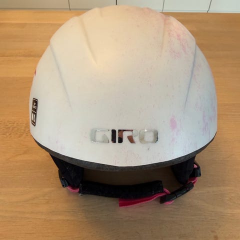 Giro alpin hjelm i svart med rosa blomstermønster. Godt brukt. St. S