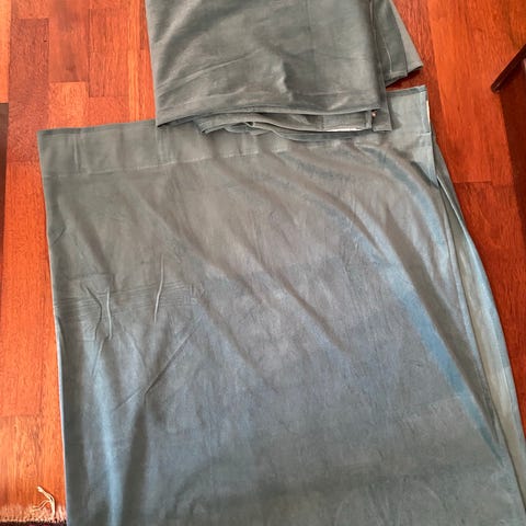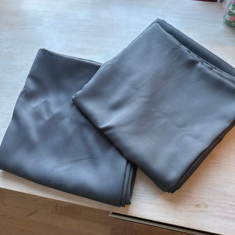 2 Lysegrå gardiner, nesten ubrukt, med 2 putetrekk i same stoff gis bort