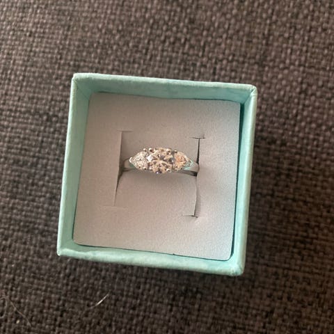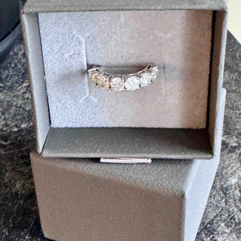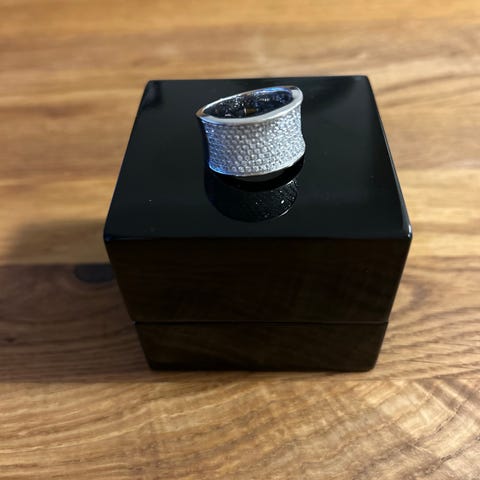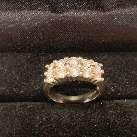 Nydelig diamantring, med glitrende og vakre diamanter fattet i tre rosetter.