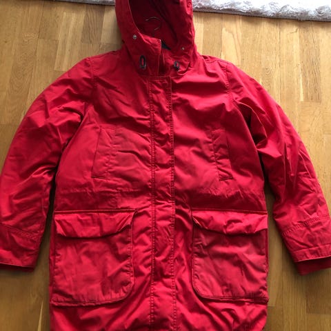 Cellbes jakke for dame i størrelse XXL. Jakken er rød og laget i polyester. Den har hette, glidelås foran med knappestolpe, flere lommer foran og vattert innside. Egner seg som ytterjakke i kjøligere vær.