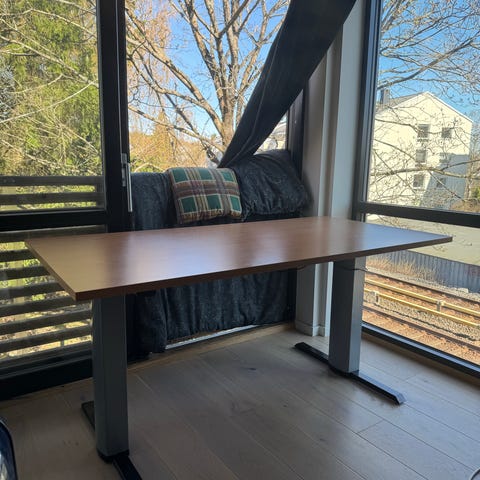Selger et solid elektrisk hev-senk skrivebord (160 × 80 cm) som fungerer helt fint. Perfekt til hjemmekontor, studie eller gaming-oppsett.