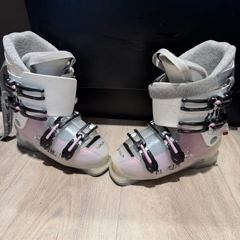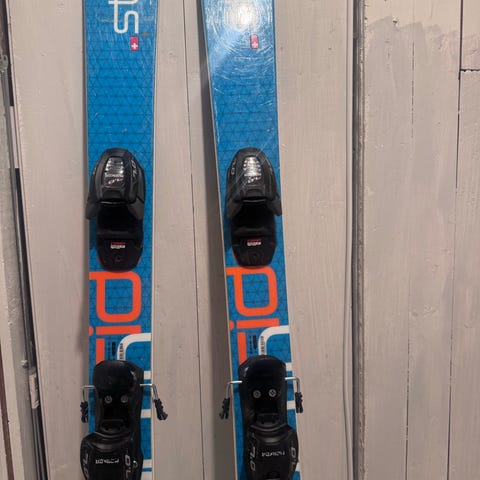 Det er en flik som har knekt av på tuppen, se bilde. Men bindinger og resten av skiene er fine.