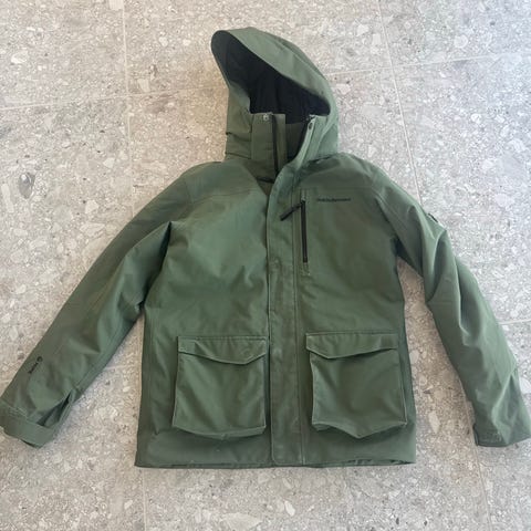 Jakken er fin , men er noen små hull som er satt på bot på. Bøtene vises knapt om du ikke vet de er der . Selges derfor til redusert pris