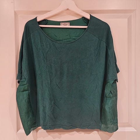 Topp i mosegrønn farge og lang lakke i flaskehrønn farge. Lommer i begge sider på jakken. Selges billig da toppen er sydd i splitten ene siden pga av en revne i splitten med på toppen.. Kr 50 for begge plaggene. Kan sende