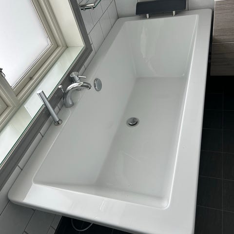 Badekarbrett i tre til plassering over badekar. Brettet har ribbet overflate og ligger stødig på kanten av karet. Egnet som avlastningsflate for såpe, bøker eller annet tilbehør under bading. Passer til badekar med tilstrekkelig bredde for at brettet kan hvile trygt på begge sider. 15x70 cm. Selges grunnet flytting
