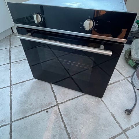 Plasseres i kjøkkenskap, like bred som en vanlig integrert stekeovn.