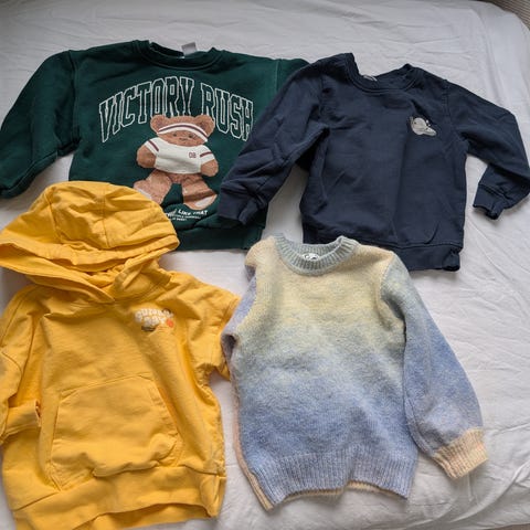 Polo Ralph Lauren genser for barn i størrelse 140, unisex. Genserne er laget i bomull og har flerfargede detaljer. Én genser er mørk med små flerfargede Polo-logoer, den andre er lys med flerfarget Polo Ralph Lauren-trykk på brystet. Passer til hverdagsbruk og kan kombineres med ulike underdeler for et avslappet antrekk. RL str L 12/14, små i str, ca 140. Samlet 600kr eller 400kr per.