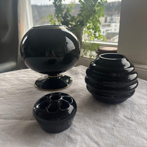 Vase i glass, ametyst med gullkant