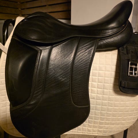 Pent brukt Prestige Passion Monoflap dressursal i kalveskinn selges. En av de beste salene jeg har ridd i!