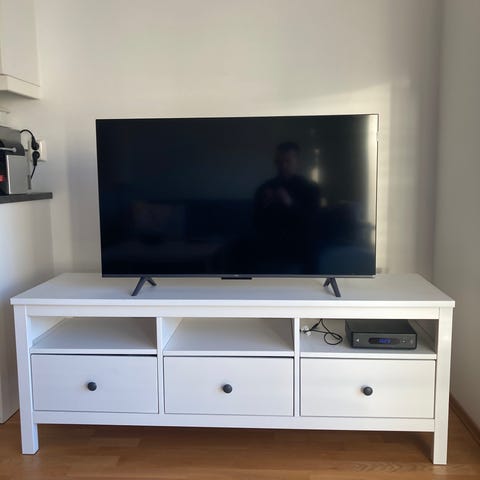 En pent brukt tv benk som har stått på samme sted i mange år, så noe slitssje vil følge med