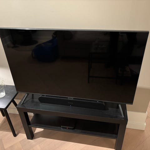 Samsung TV i svart utførelse. Modellen har slankt design med to føtter og er beregnet for plassering på TV-benk eller annet plant underlag. Skjermen har flat panel og standard ramme rundt. Bak finner du tilkoblinger for strømkabel og øvrige enheter (se bilder for detaljer om porter og tilkoblinger). Egnet til bruk i stue, soverom eller andre rom der det er behov for en TV med enkel plassering på møbel.