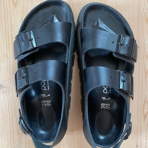 Selger et par Birkenstock Milano Birko flor sandaler i størrelse 37, de er brukt et par ganger og fremstår derfor deretter. Modellen er regular/wide.