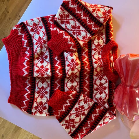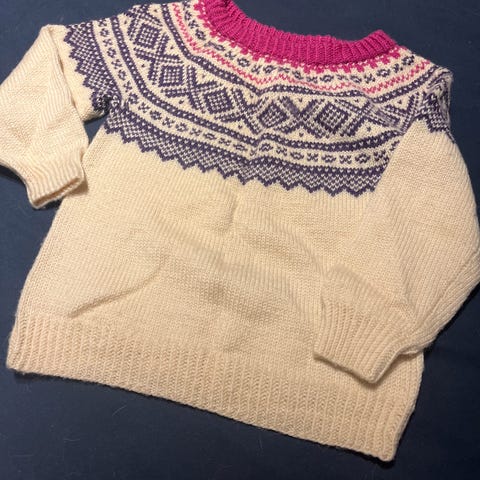 Nydelig hjemmestrikket genser til barn. Passer 3-4 år.