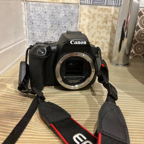 Lite brukt speilreflekskamera selges, som nytt. Canon 250D kamerahus og objektiv, EF-S18-55mm f/3.5-5.6 III. Følger også med batteri, lader, minnekort og kameraveske, alt i perfekt stand.