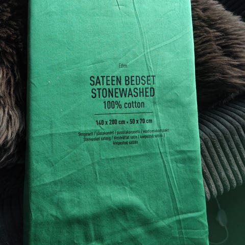 Nesten ubrukt sengesett (dynetrekk 140x200 cm og putevar 50x70 cm) fra Kid Interiør (kjøpt november 2024). Original pris var 599,-, men jeg selger det for 200 kr.