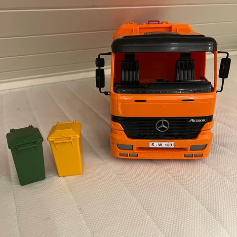Bruder Mercedes Actros lekebil søppelbil oransje plast