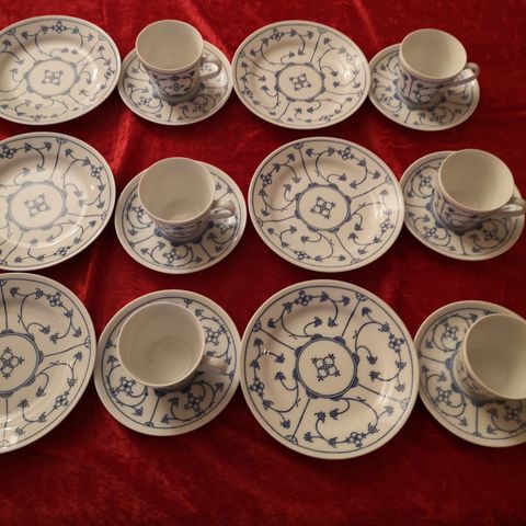 Jäger Eisenberg, stråmønster, blått og hvitt, porselen, vintage, retro, kaffekopper, tekopper, tysk porselen, klassisk servise, samleobjekt, tradisjonelt mønster