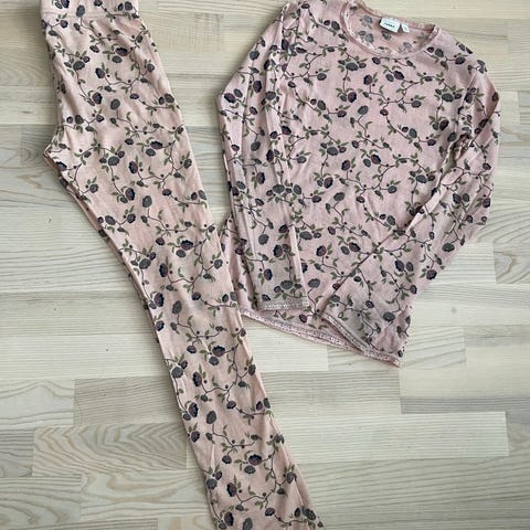 Name it ullsett for jente i størrelse 134. Sett med langermet genser og longs i ull. Fargen er lilla. Egnet som innerlag eller pysjamas på kjølige dager. Buksa er hel, noen hull på genseren. Selges derfor billig. Kan sys, mye bruk igjen.