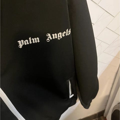 Palm Angels jakke i svart størrelse M (mer som en L) jakken har glidelås og hvite detaljer på armene.