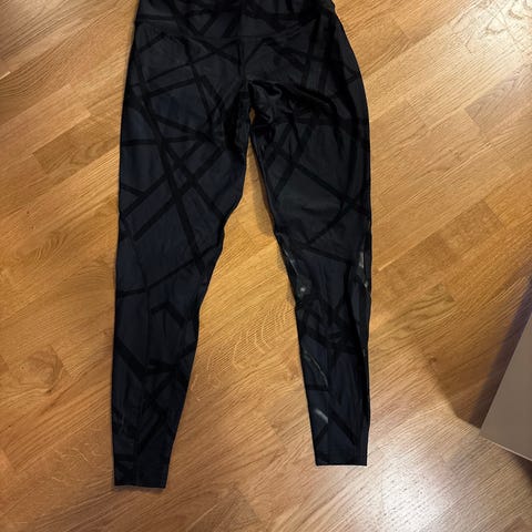 2XU løpetights/treningstights/sportstights for dame i størrelse S. Tightsen har svart bunnfarge med mønster og røde detaljer på bena. Elastisk materiale som sitter tett på kroppen og egner seg til løping og annen trening. Strikk i livet. Laget i syntetisk stoffblanding som tørker raskt.